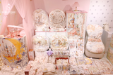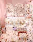 Một gối có họa tiết "Linh lan chi xuân + Vườn hoa Sally" (铃兰之春+莎莉花园), với hình ảnh hai chú thỏ mặc váy, đứng giữa những bông hoa linh lan và hoa bướm.