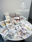 Họa tiết tinh tế và đáng yêu: Mỗi chiếc khăn trong set đều có họa tiết in chìm hoặc in nổi, với các hình ảnh hoạt hình ngộ nghĩnh, các loài vật dễ thương hay các câu chuyện cổ tích nhẹ nhàng. Màu sắc chủ đạo là những gam màu pastel trang nhã, kích thích thị giác và mang lại cảm giác dễ chịu.