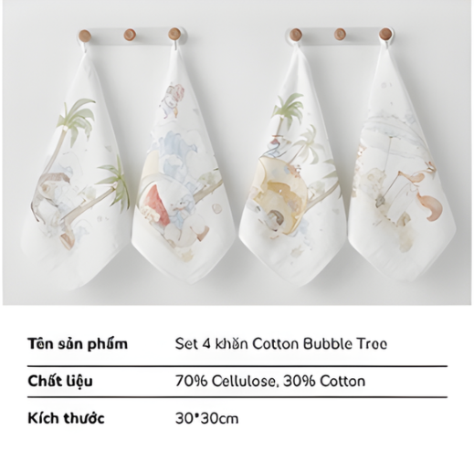 Set 4 khăn sữa Bubble Tree là một sản phẩm không thể thiếu trong bộ đồ dùng chăm sóc bé yêu hằng ngày. Được thiết kế với chất liệu mềm mại và an toàn, sản phẩm mang lại sự tiện lợi và nhẹ nhàng tối đa, bảo vệ làn da mỏng manh của bé.