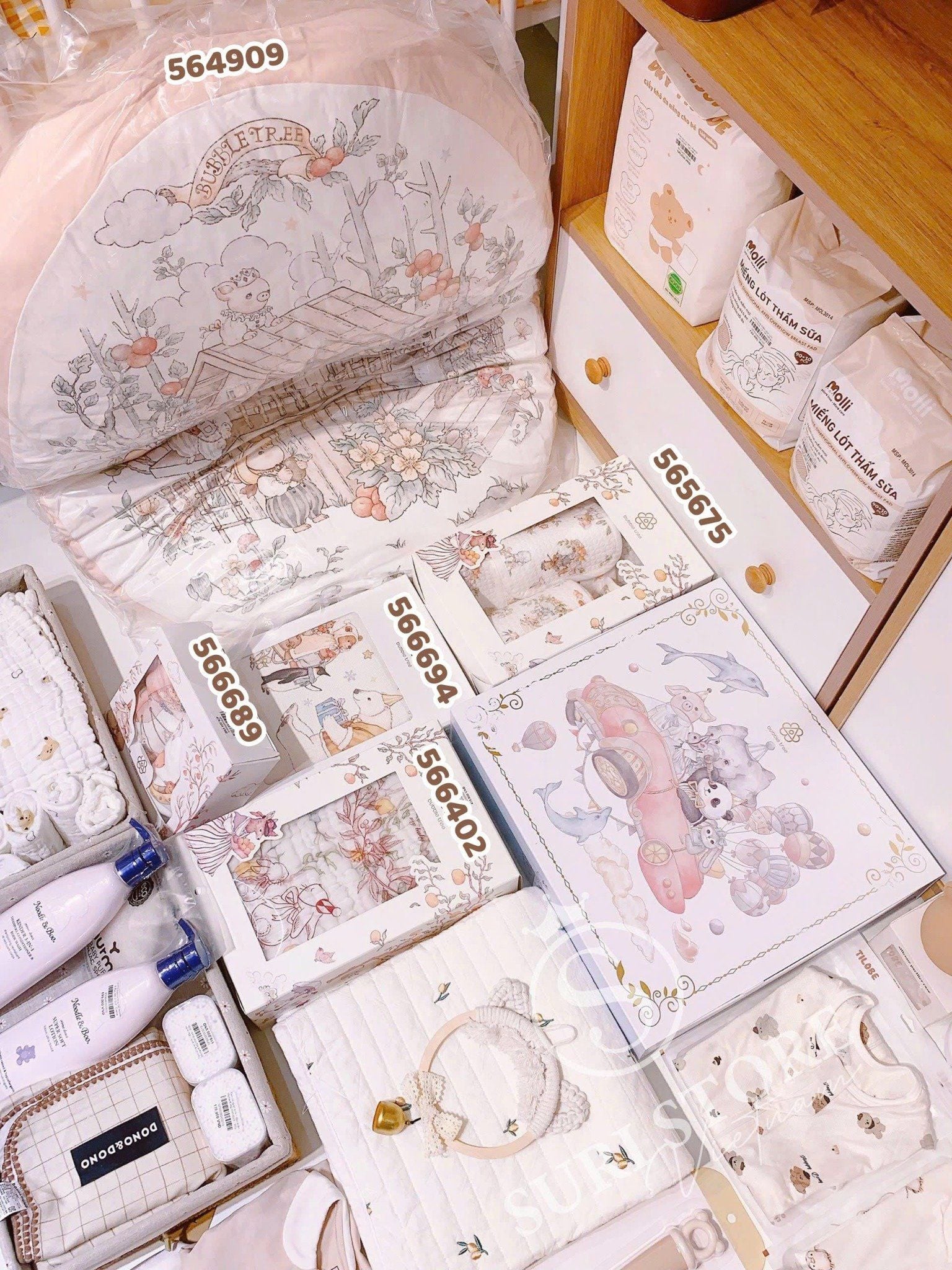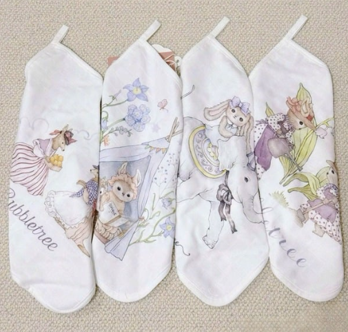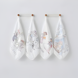 Họa tiết tinh tế và đáng yêu: Mỗi chiếc khăn trong set đều có họa tiết in chìm hoặc in nổi, với các hình ảnh hoạt hình ngộ nghĩnh, các loài vật dễ thương hay các câu chuyện cổ tích nhẹ nhàng. Màu sắc chủ đạo thường là những gam màu pastel trang nhã, kích thích thị giác và mang lại cảm giác dễ chịu. Họa tiết được in bằng mực in an toàn, không chứa chất độc hại, đảm bảo sức khỏe cho bé.