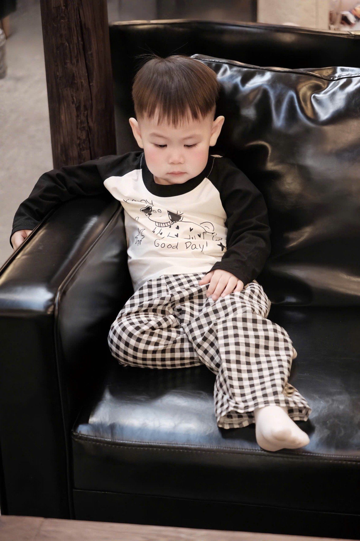 Kiểu dáng: Set đồ ngủ/đồ mặc nhà, bao gồm Áo thun Raglan và Quần dài kẻ caro.
