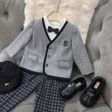 🌟 Set Vest Bé Trai Houndstooth Đen Trắng – Lịch Lãm Đậm Chất Quý Ông Cổ Điển