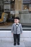 Kiểu dáng: Áo vest một hàng cúc (single-breasted) cài phía trước, có ve áo truyền thống (notch lapel). Kiểu dáng này thoải mái hơn cho bé, vừa vặn nhưng không quá bó sát.