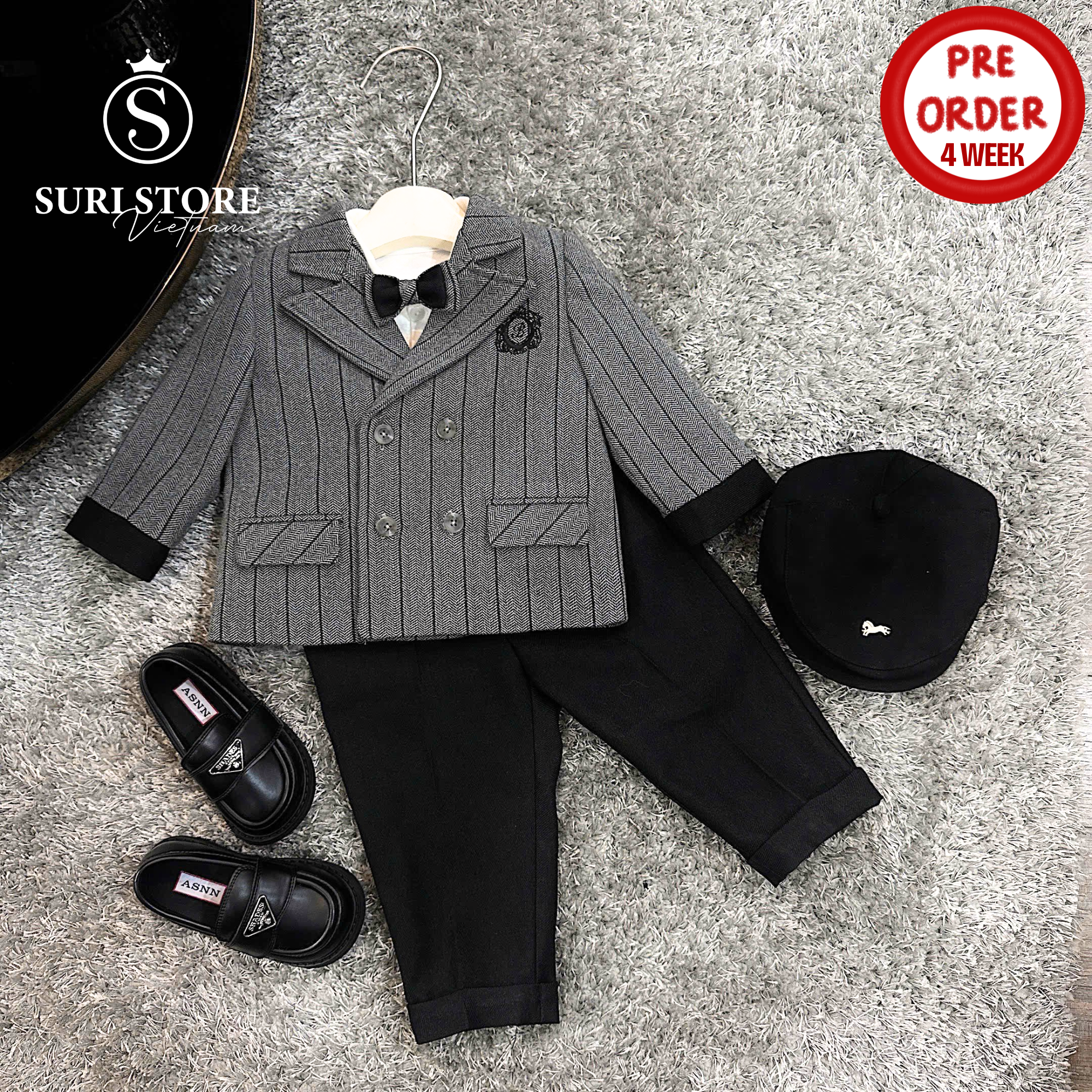 Set vest này là một lựa chọn cực kỳ tinh tế, mang đậm phong cách thời trang Anh Quốc (British Heritage), tạo nên vẻ ngoài lịch lãm, chững chạc và rất nổi bật cho bé trai trong dịp Tết Nguyên đán, tiệc tùng hoặc chụp ảnh kỷ niệm.