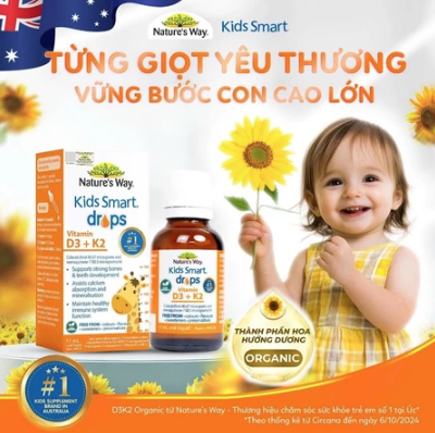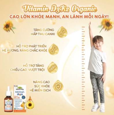 - Để hành trình lớn khôn đầu đời của con có được nền tảng vững chắc, Vitamin D3K2 Organic Nature’s Way chính là người bạn đồng hành tuyệt vời của ba mẹ và bé yêu, giúp hỗ trợ phát triển chiều cao và hệ miễn dịch toàn diện.