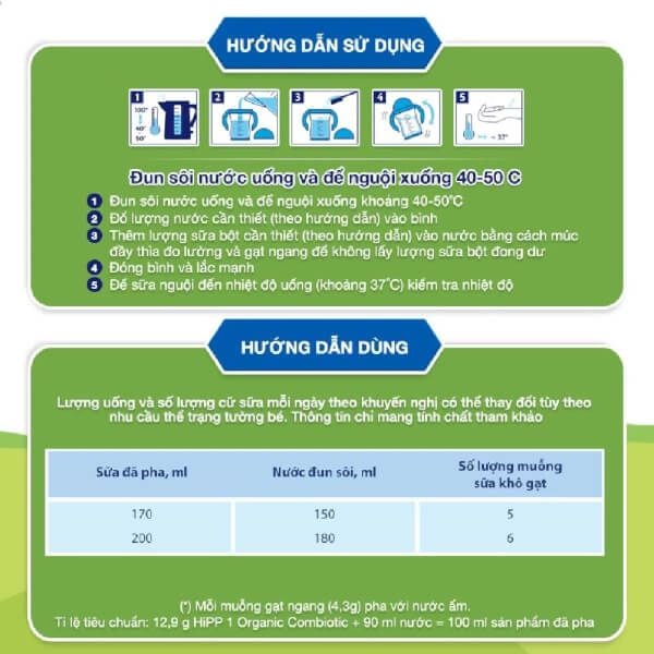 Hướng dẫn cách pha sữa Hipp số 1 Organic Combiotic HMP 800g