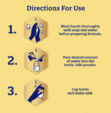 Đảm bảo dụng cụ được rửa sạch và tiệt trùng kỹ trước khi pha. Dùng muỗng có sẵn trong hộp để đong bột.