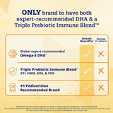 Bổ sung các dưỡng chất: Choline, Sắt và DHA giúp kích thích các tế bào thần kinh, phát triển thị giác non nớt của trẻ, cải thiện sức khỏe đường hô hấp và hỗ trợ phát triển hệ thống miễn dịch. Vì não bộ của trẻ phát triển nhanh chóng trong những tháng đầu đời, nhiều chuyên gia tin rằng việc trẻ bổ sung DHA và ARA trong thời gian này sẽ giúp ích trong việc phát triển toàn diện cho bé.
