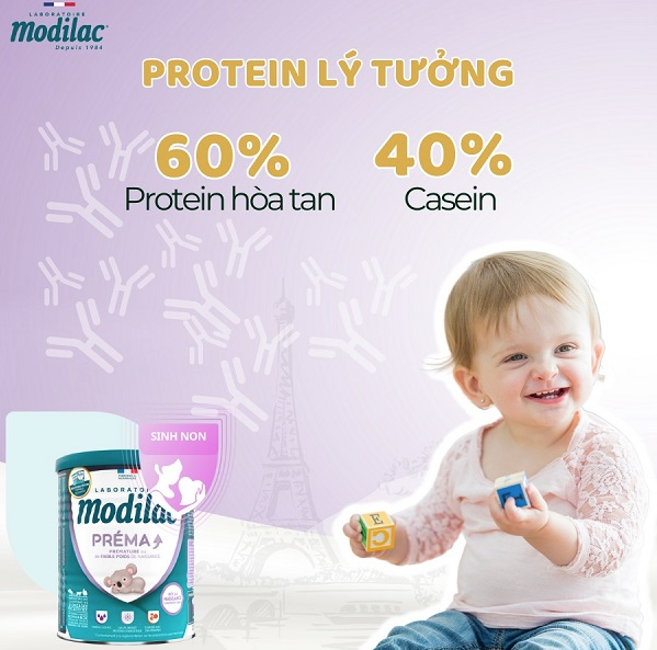Sữa mẹ luôn là nguồn dinh dưỡng lý tưởng cho trẻ sơ sinh và trẻ nhỏ, đặc biệt là trẻ sinh non. Không chỉ cung cấp đầy đủ dinh dưỡng, khoáng chất, vitamin cùng các loại kháng thể để phát triển khỏe mạnh, sữa mẹ còn có “công thức” Protein đặc biệt phù hợp với đặc điểm tiêu hóa, nhu cầu dinh dưỡng của trẻ. Sữa mẹ có tỉ lệ Protein hòa tan chiếm 60% và Casein 40%. Đây là tỉ lệ lý tưởng cho hệ tiêu hóa của trẻ sinh non, trẻ sơ sinh và trẻ nhỏ. Trong trường hợp trẻ cần sử dụng sữa công thức, ba mẹ nên ưu tiên loại sữa có tỉ lệ Protein lý tưởng 60/40 giúp trẻ hấp thu tối đã dinh dưỡng.