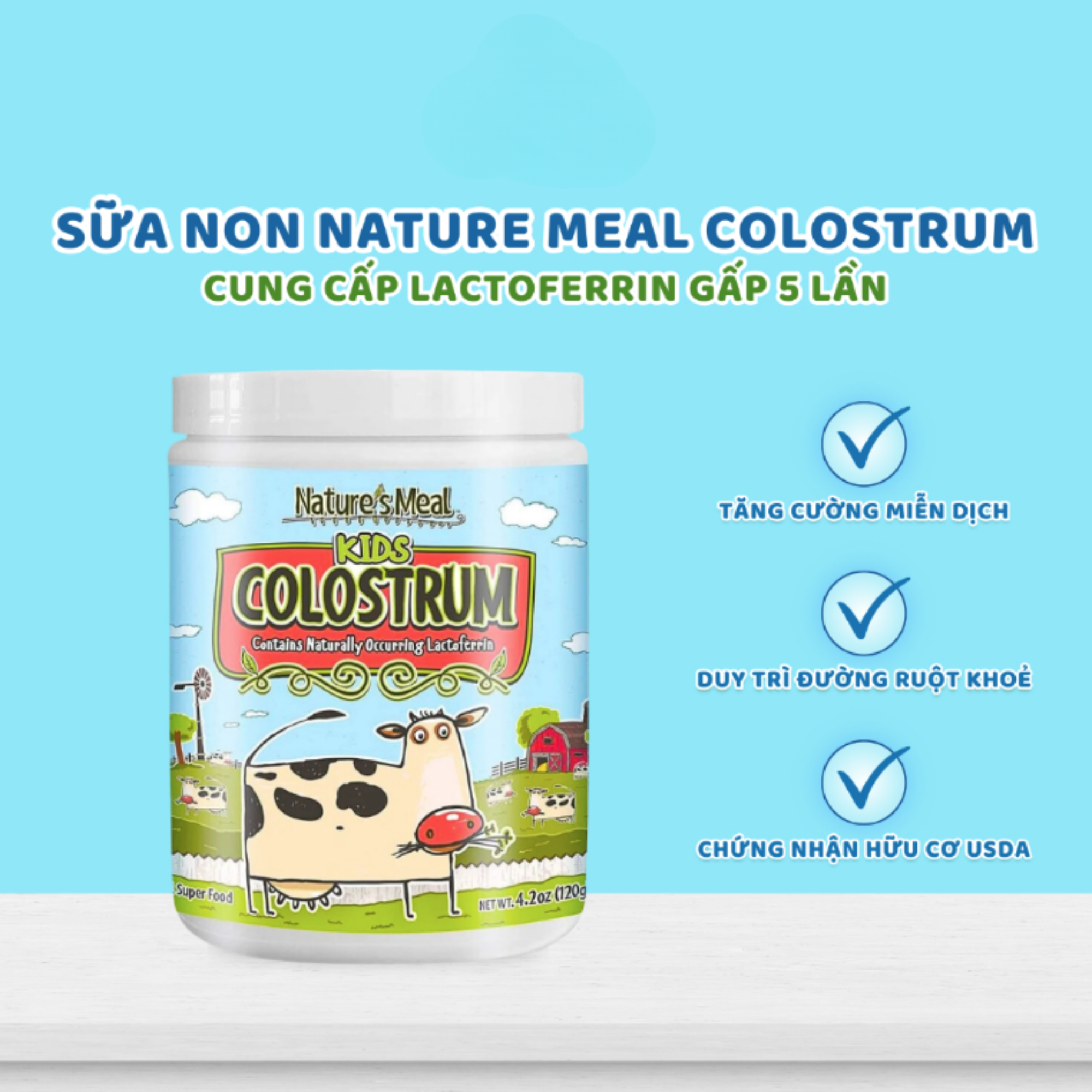 - Sữa non Nature's Meal có chứa lượng kháng thể vô cùng dồi dào: