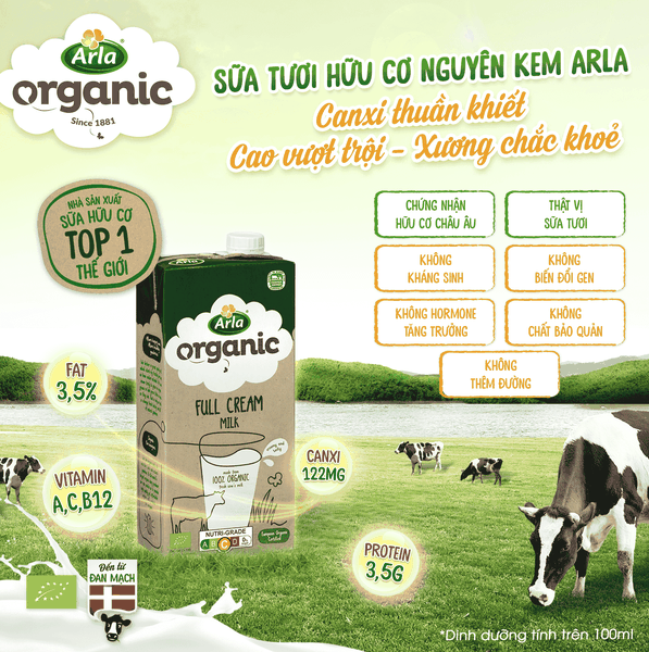 Nhờ vậy mà sữa hữu cơ nguyên kem Arla Organic không chỉ có hương vị thơm ngậy mà còn giàu dinh dưỡng tự nhiên từ thiên nhiên:
