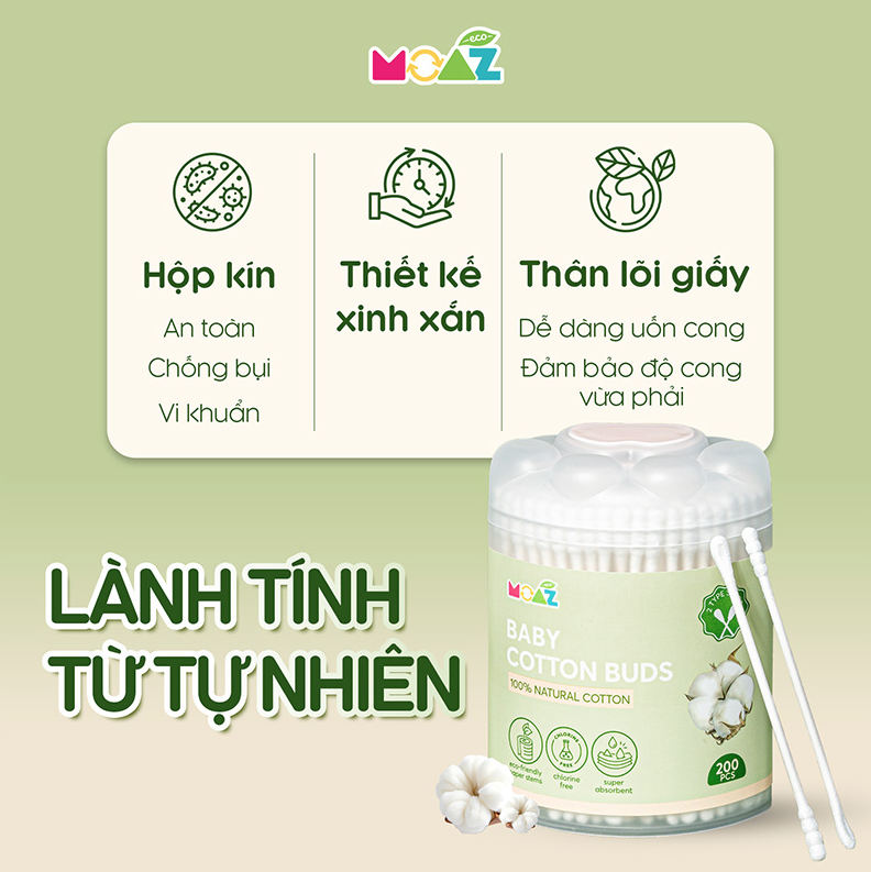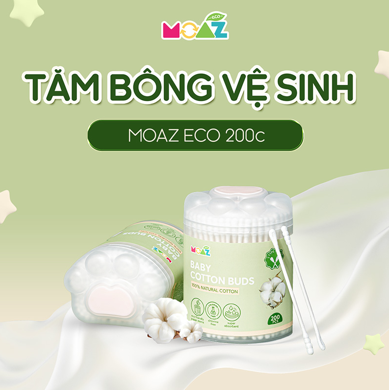 Tăm bông vệ sinh cho bé Moaz Eco là một sản phẩm được thiết kế đặc biệt, được sản xuất trên tiêu chuẩn cao, thân thiện với môi trường, đảm bảo chất lượng và sự an toàn cho các mẹ cùng bé sử dụng. Sản phẩm có những đặc điểm đáng chú ý như sau: