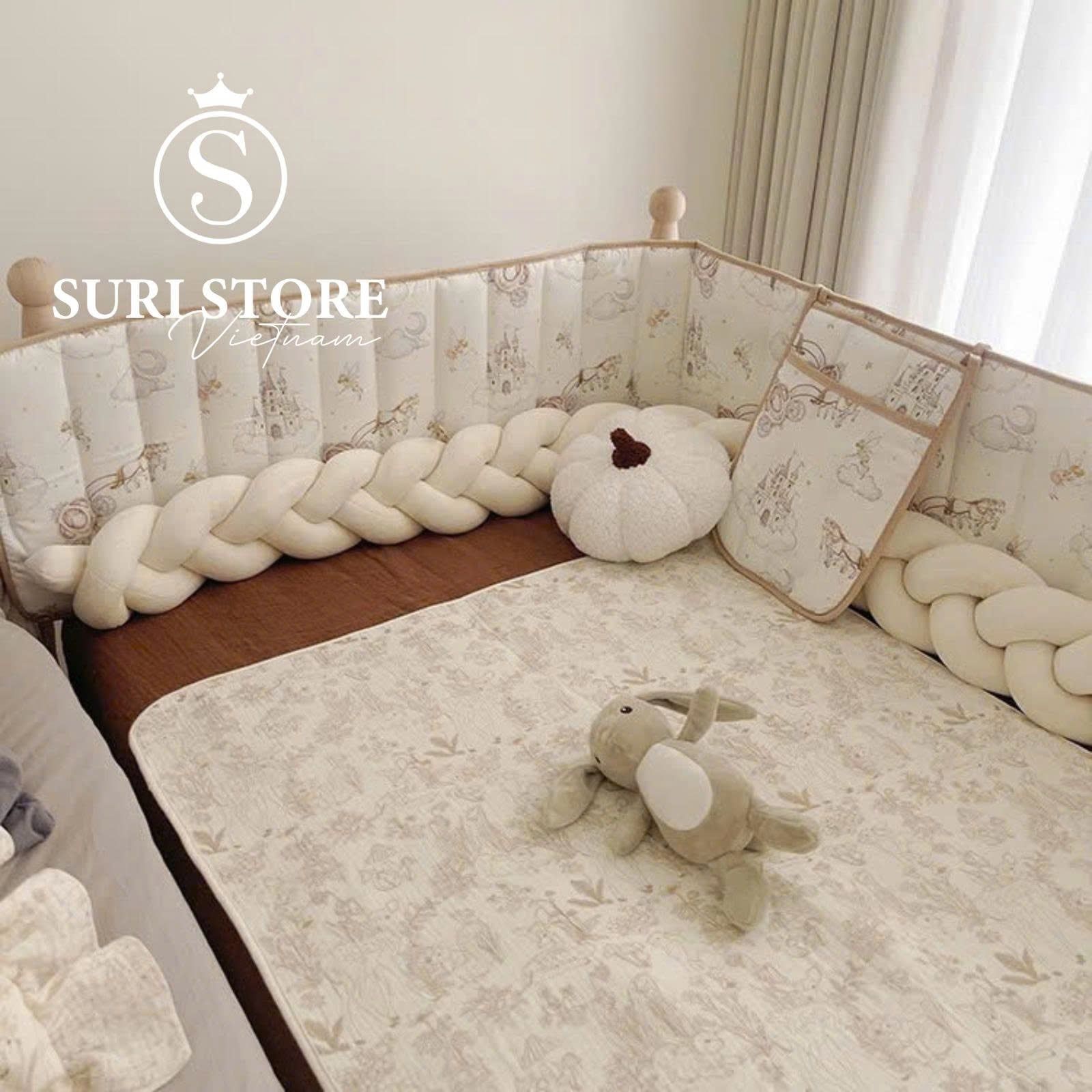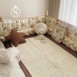 Hình Dạng và Kích Thước: Tấm lót có hình chữ nhật, kích thước đủ lớn để trải trên mặt giường lớn, tạo ra một khu vực chơi hoặc ngủ riêng biệt, sạch sẽ cho bé. Kích thước này cũng có thể phù hợp để lót dưới sàn hoặc trong khu vực chơi của bé.