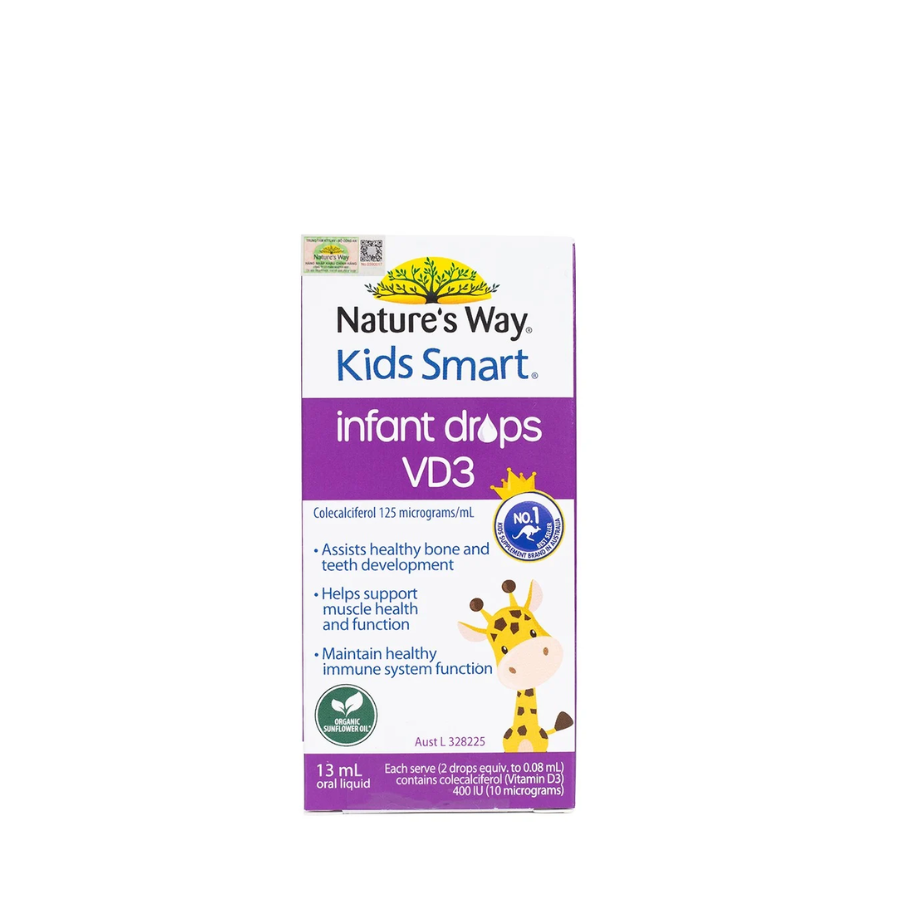 - Nature's Way Kids Smart Infant Drops VD3 bổ sung lượng Vitamin D thiếu hụt trong trường hợp trẻ ăn kém hoặc ít được tiếp xúc với ánh nắng mặt trời