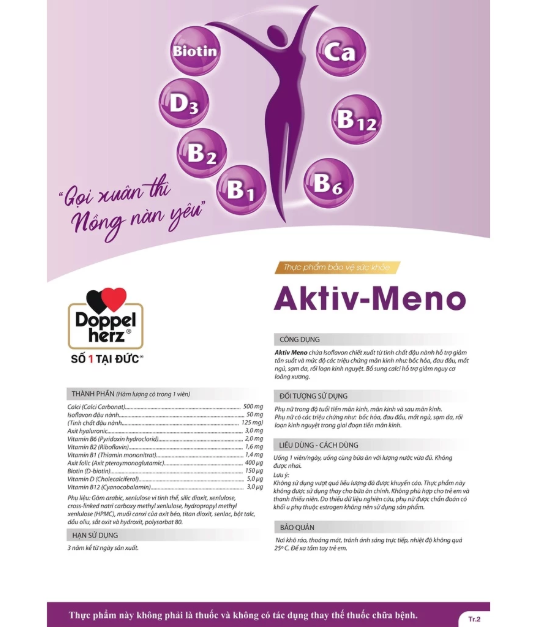 Active Meno chứa Isoflavon chiết xuất từ tinh chất đậu nành hỗ trợ: