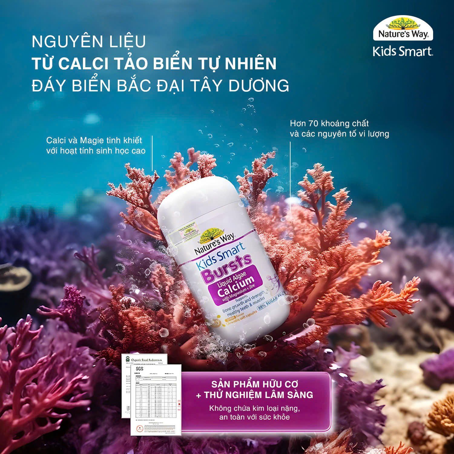 Viên uống canxi tảo biển đỏ Kids Smart Bursts Nature's Way Úc - 30 viên
