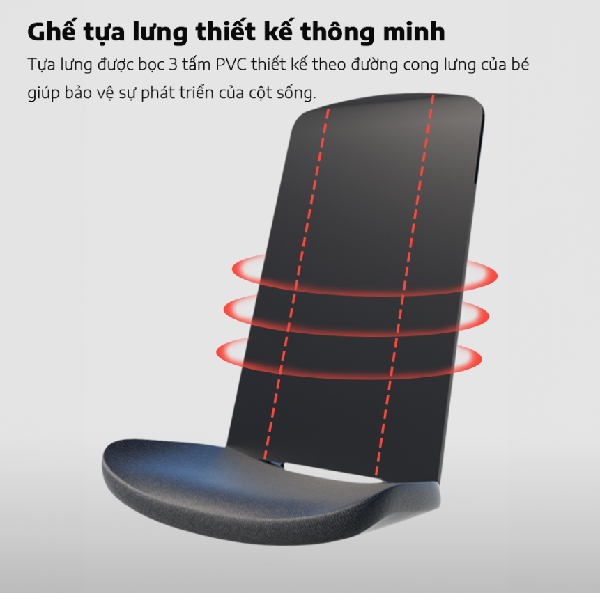 - Thiết kế tựa lưng hỗ trợ sự phát triển cột sống của trẻ.